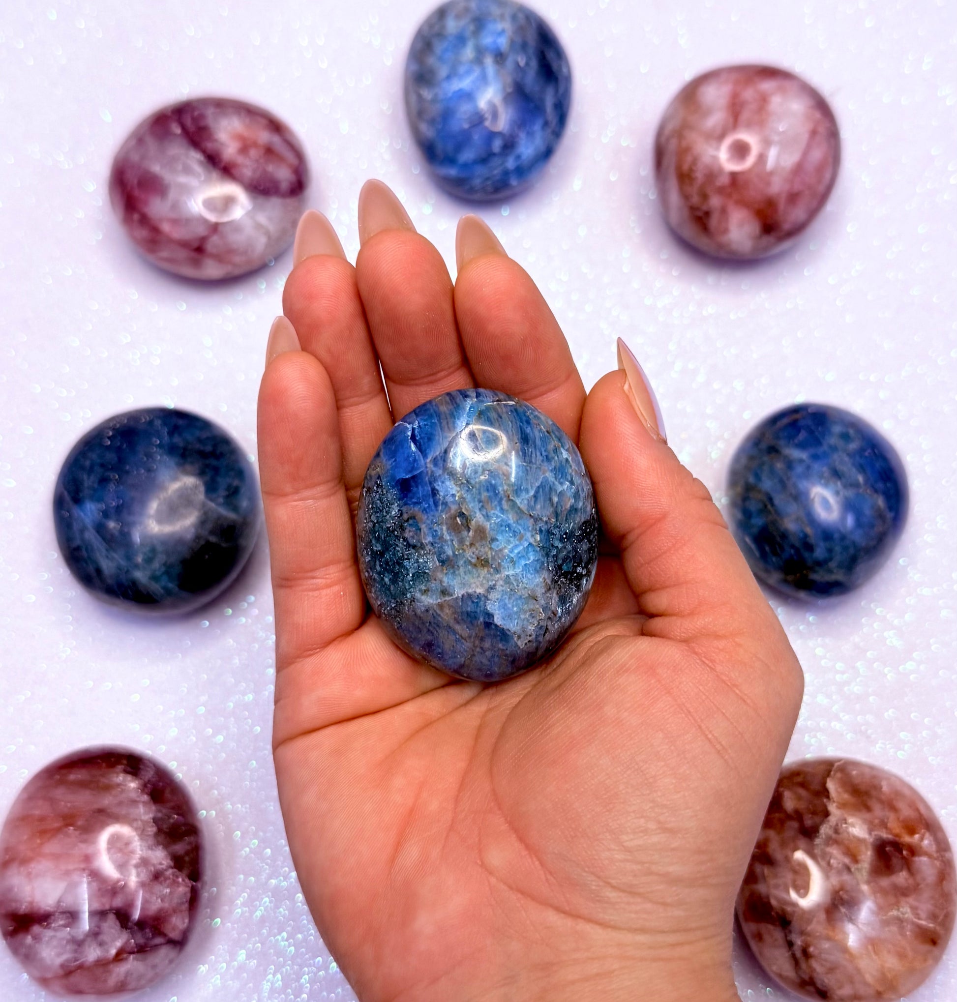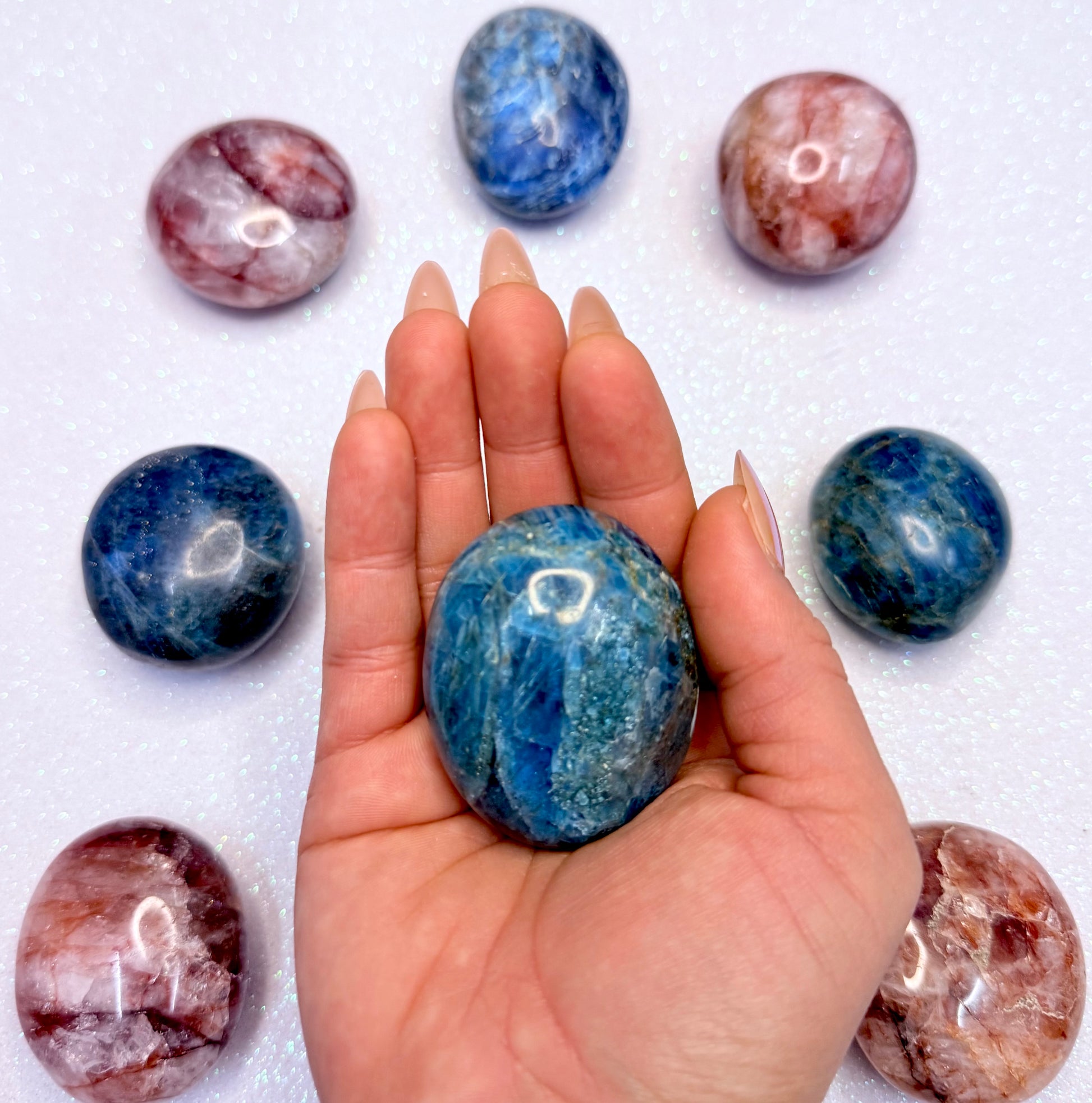 Crystal Type: Palm Stone. Palm stones are also known as worry stones and they are used in often used in meditation, energy amplification, healing, grounding and connecting with the energy of the crystal by holding them in the palm of your hand and focusing on your intentions.