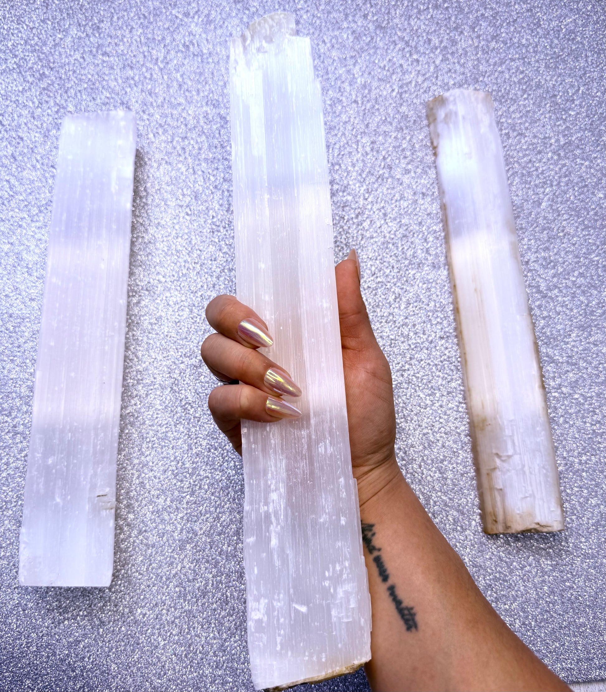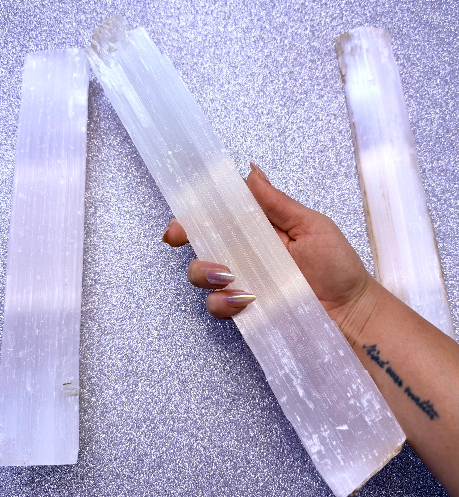 Selenite is named after Selene, the Greek moon goddess and reflects her calming, luminous and spiritual qualities. This stunning crystal is referred to as 'The Crystal of Cleansing' and not only cleanses people, places and things; but also cleanses and charges other crystals when they are placed on top of it.